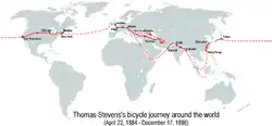 - ↑ Stevens, Thomas (1888), Around the World on a Bicycle, cited The Bicycle, UK, 11 September 1946, p.6