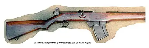 O Thompson Autorifle é um rifle semiautomático que usa um mecanismo do tipo "Blish lock" para atrasar a ação da arma. Foi inicialmente oferecido em .30-06 em 1921, e com o modelo de 1923 em munições 7,62×54mmR "russo".
