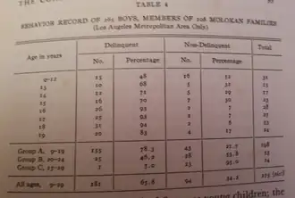 Dois tipos de análise são feitas: na análise descritiva, foram procuradas relações entre dados como cor da pele, classe socioeconômica e nível de QI e a probabilidade de o indivíduo ser processado criminalmente. Além disso, foi analisada a porcentagem de reincidentes e primários entre os diferentes grupos. Os reincidentes são classificados em criminosos crônicos (4 ou mais crimes) e não crônicos (menos de 4 crimes). É utilizada também uma escala do grau de seriedade dos crimes praticados. Já ná análise temporal, foi feita uma classificação dos crimes, dividindo-os em tipos. A partir disso, os autores analisaram as repetições dos tipos de crime por cada delinquente, a probabilidade de voltar a cometer um delito de acordo com o tipo de crime praticado anteriormente. Além disso, foram analisadas também outras questões, incluindo o cometimento de crimes de acordo com a idade do indivíduo e o espaço de tempo entre os crimes praticados.