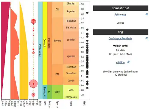 Verifique data em: |data=(ajuda) - ↑ a b Kumar, Sudhir; Hedges, S. Blair (15 de julho de 2011). «TimeTree2: species divergence times on the iPhone». Bioinformatics. 27 (14): 2023–2024. ISSN 1367-4803. PMC 3129528