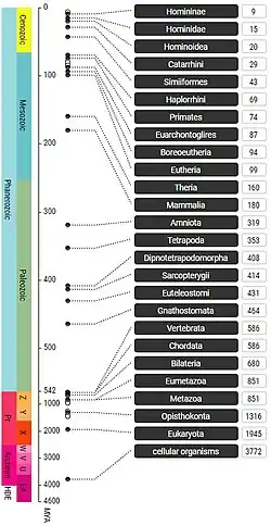 TimeTree é uma base de conhecimento pública com informações sobre a escala temporal evolutiva da vida, gratuito e desenvolvido por S. Blair Hedges e Sudhir Kumar, agora na Temple University, que apresenta tempos de divergência na árvore da vida.[1][2]O conceito básico foi produzir e apresentar um consenso comunitário sobre a árvore cronológica da vida [3][4]a partir de estudos publicados e permitir fácil acesso a essas informações na web ou em dispositivos móveis. [2] O banco de dados permite a busca do tempo médio de nodos entre duas espécies ou táxons superiores, visualizando uma linha do tempo na perspectiva de um táxon, mostrando todas as divergências anteriores até à origem da vida, e construindo uma árvore do tempo de um táxon escolhido ou grupo de táxons pedidos pelo usuário. [5] O TimeTree tem sido usado na educação pública para conceptualizar a evolução da vida, como em ambientes do ensino médio. [6] [7] [8]