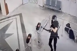 Embora a universidade tenha 12.000 alunos matriculados, apenas 3.000 indivíduos estavam no campus no momento do tiroteio.[7] O atirador foi rastreado por câmeras de segurança caminhando em direção à universidade às 11h, carregando uma espingarda.[8] De acordo com relatos iniciais, ele foi capaz de dominar e matar o segurança antes que ele ativasse um botão de pânico.[9] Um estudante da faculdade disse que ouviu tiros enquanto estava no elevador e que viu o que acreditava ser o atirador atirando em duas estudantes que tentavam escapar.[10]