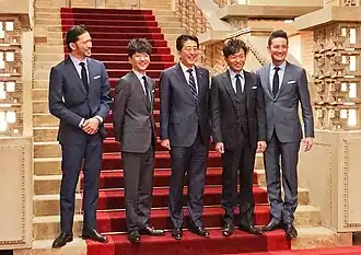 ![]() Tokio com o ex-Primeiro-ministro do Japão Shinzo Abe | |
