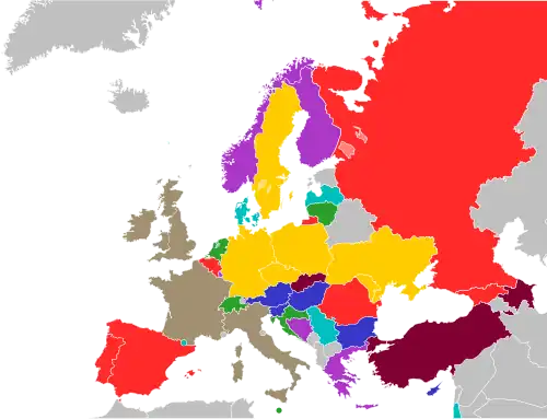 Países envolvidos nos diferentes torneios europeus de râguebi (época 2012-2014)