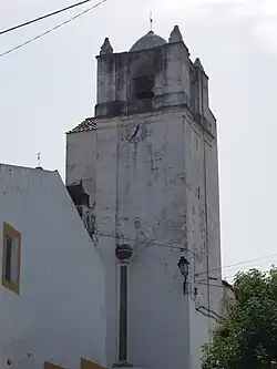 A torre, de cúpula hemisférica com pináculos nos acrotérios, eleva-se alterosa por entre o casario envolvente. Possui dois sinos antigos, o maior, destinado às horas, tem a seguinte inscrição: