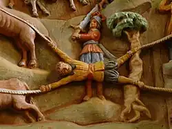 Uma representação de tortura de 1667, no altar da igreja de peregrinação Fraukirch, perto de Thür, na Alemanha.