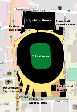 - ↑ «Tottenham Hotspur Football Club Stadium Development | Haringey Council». www.haringey.gov.uk. Consultado em 30 de dezembro de 2023