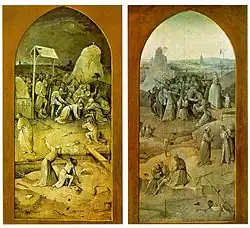 Painéis exteriores apresentando duas cenas da Paixão de Cristo.