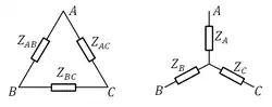 Impedâncias conectadas em delta (Δ) e estrela (Y)