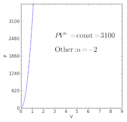 | n < 0 | — | Os expoentes negativos refletem um processo onde trabalho e calor fluem simultaneamente para dentro ou para fora do sistema. Na ausência de forças exceto pressão, tal processo espontâneo não é permitido pela segunda lei da termodinâmica[2]; no entanto, os expoentes negativos podem ser significativos em alguns casos especiais não dominados por interações térmicas, como nos processos de certos plasmas em astrofísica,[3] ou se existem outras formas de energia (e.g. energia química) envolvidas durante o processo (e.g. explosão). |