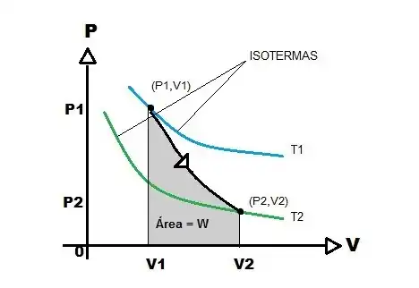 Como trata-se de uma expansão, Vf será sempre maior que Vi, por isso, a razão entre elas será maior que 1, e logaritmo natural de um número maior que 1 é sempre positivo. Portanto, o trabalho (W) realizado por um gás ideal em uma expansão isotérmica é sempre positivo. Para uma compressão (Vf menor que Vi) o trabalho (W), nas mesmas condições, será negativo. Usando a Primeira lei da termodinâmica para gases ideais, sabe-se que: