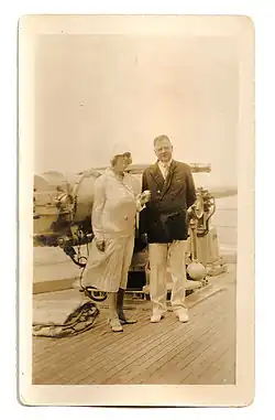 - ↑ «Hoover Enters Home Waters; Begins Packing: Expected in U. S. at 8 A. M. Sunday». Chicago Daily Tribune. 4 de janeiro de 1929. p. 21. ProQuest 181001819. Consultado em 20 de maio de 2016