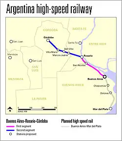 Em 29 de abril de 2008, a então presidente argentina Cristina Kirchner assinou contrato do projeto do trem de alta velocidade que utilizará tecnologia francesa da empresa Alstom. A obra teria um prazo de execução de 4 anos e um custo aproximado de 4 bilhões de dólares (incluindo financiamento privado). Dessa forma a Argentina poderia ter trens capazes de alcançar velocidades máximas de 200 km/h em um percurso total de 1000 km sendo assim o primerio sistema de trem de alta velocidade das Américas.[2]