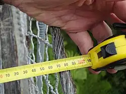 Muitas fitas também têm marcações especiais a cada 40 cm (16 polegadas), que é um intervalo padrão para tachas na construção. Três espaços de 16 polegadas fazem exatamente 4 pés (1,219 mm), que é a largura comercial de uma folha de madeira compensada, drywall ou aglomerado.