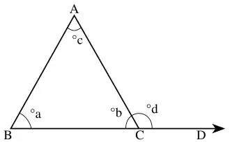 - 1ª: A soma de dois ângulos internos de um triângulo é igual ao ângulo externo oposto. (teorema do ângulo externo de um triângulo)