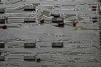 Em eletrônica, uma trilha numa placa de circuito impresso (PCB) é o equivalente de um fio para a condução de sinais. Cada trilha consiste de listras de cobre que permanecem após o material condutor circundante ter sido removido através de um produto corrosivo (como o cloreto férrico). Trilhas que conduzem apenas sinais são geralmente mais estreitas do que as trilhas que conduzem energia ou que servem para aterramento, porque seus requisitos de transporte de corrente são geralmente muito menores.
