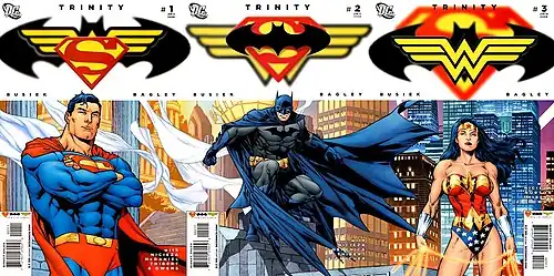 A primeira publicação a ostentar oficialmente o título de "Trindade" foi a minissérie em três edições Batman/Superman/Wonder Woman: Trinity, escrita e desenhada por Matt Wagner e publicada em 2003 pela DC Comics. A minissérie se situava, cronologicamente, no início da carreira dos três personagens, e revelou o primeiro momento em que os três se uniram por um objetivo em comum, antes da formação da Liga da Justiça, para enfrentar Ra’s al-Ghul, Bizarro e uma Amazona renegada.[3]
