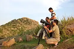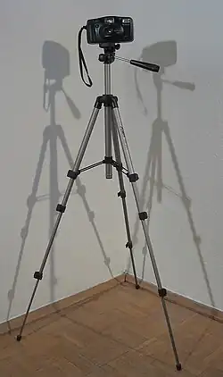 Na fotografia, um tripé é usado para estabilizar e elevar uma câmera, uma unidade flash ou outro equipamento fotográfico. Todos os tripés fotográficos têm três pernas e uma cabeça de montagem para casar com uma câmera. A cabeça de montagem geralmente inclui um parafuso que se encaixa a um receptáculo fêmea de rosca na câmara, bem como um mecanismo para ser capaz de girar e inclinar a câmera quando é montado sobre o tripé. As pernas do tripé são normalmente telescópicas, a fim de economizar espaço quando não estiver em uso. Eles são geralmente feitos de alumínio, fibra de carbono, madeira, aço ou plástico.