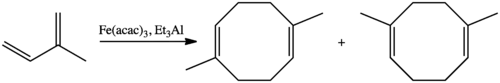 O Fe(acac)3 calalisa a dimerização do isopreno em uma mistura de 1,5-dimetil-1,5-ciclooctadieno e 2,5-dimetil-1,5-ciclooctadieno.[4] De maneira análoga, esse complexo também catalisa a polimerização da 1,3-benzoxazina.[5]
