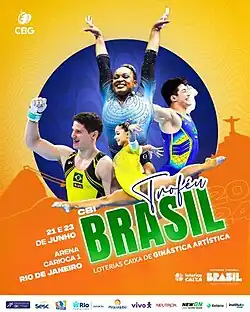 - ↑ @cbginastica (21 de maio de 2024). «ALÔ CIDADE MARAVILHOSA! Estamos chegando! 🌊☀️🏖️ A partir do próximo dia 21 de junho acontece o Troféu Brasil Loterias Caixa de Ginástica Artística! A competição, em moldes de etapa de Copa do Mundo por aparelhos, vai invadir a Arena Carioca 1, na Barra da Tijuca, e contará com a presença das GRANDES ESTRELAS da nossa Ginástica Artística! 🤸🏻💫🤩». Consultado em 2 de junho de 2024 – via Instagram