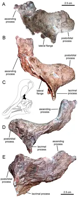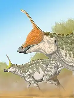 ![]() Crânio holótipo com crista quebrada | |||||||||||||||||||||
