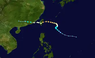 A tempestade trouxe fortes chuvas para o sul da China, com seis condados na província de Fujian relatando mais de 200 mm (7,9 in) de precipitação em 23 horas. As chuvas foram as mais fortes em um século em algumas partes de Guangdong.[53][54] Yangchun registou 548,5 mm (21,59 in) em apenas sete horas, o que quebrou o recorde diário de precipitação estabelecido em 1958.[55] Em outras partes de Guangdong, a precipitação em 24 horas atingiu mais de 640 mm (25 in).[33]