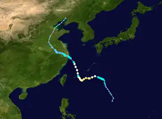 - ↑ Shuqiao, Liu (22 de julho de 2021). «Blue Warning of Typhoon». China Meteorological Administration. Consultado em 22 de julho de 2021. Arquivado do original em 22 de julho de 2021