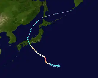 - ↑ «Typhoon moving northward after causing havoc in west Japan | The Asahi Shimbun: Breaking News, Japan News and Analysis». The Asahi Shimbun (em inglês). Consultado em 25 de agosto de 2023. Cópia arquivada em 22 de agosto de 2023