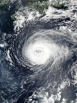 Tufão Noru na intensidade máxima a sul de Iwo Jima em 31 de julho | |