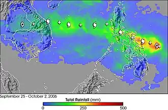 - ↑ PAGASA (28 de Setembro de 2006). «Severe weather bulletin - number 12». ReliefWeb (em inglês). Consultado em 7 de outubro de 2006