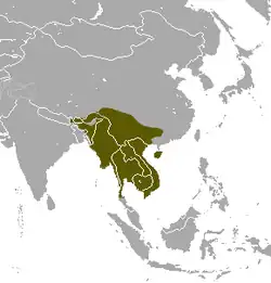 Pode ser encontrado na Malásia, Tailândia, Camboja, Vietnã, Laos, Mianmar, Bangladesh, Butão, Índia e China.