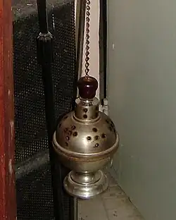 São compostos por duas partes: o vaso, com um pé alto, onde são colocadas as brasas e o incenso, e o opérculo, tampa com orifícios através da qual se escoam os fumos do incenso.[1]