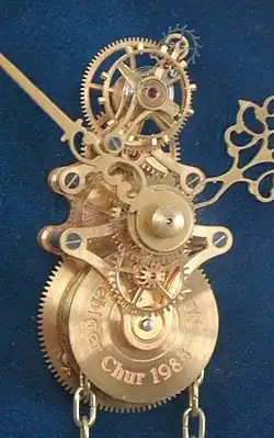 Inventado por relojoeiro francês Abraham Louis Breguet, grande inventor das coisas da relojoaria a partir dos anos 1780, a astúcia deste mecanismo consiste em fazer tornar o pêndulo e o escape[1] entre eles.