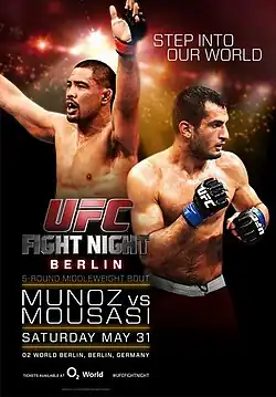 - ↑ «Gegard Mousasi vs. Mark Munoz set for UFC Fight Night 41 main event in Berlin». MMAjunkie.com. 20 de março de 2014. Consultado em 20 de março de 2014