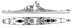 | Armamento | 9 canhões de 305 mm 12 canhões de 127 mm 56 canhões de 40 mm 34 canhões de 20 mm |