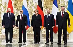 Os resultados da eleição de 25 de maio de 2014 foram considerados pelo The New York Times como "uma vitória decisiva na eleição presidencial ucraniana" para Petro Poroshenko. Esse venceu com uma plataforma pró-União Europeia, ganhando com mais de 50% dos votos e, portanto, sem a necessidade de um segundo turno com Iúlia Timochenko, que durante a eleição só foi capaz de reunir menos de um terço de seu número de votos. Poroshenko anunciou que suas prioridades imediatas seriam tomar medidas no conflito no leste da Ucrânia e reatar os laços diplomáticos com a Rússia.[83]