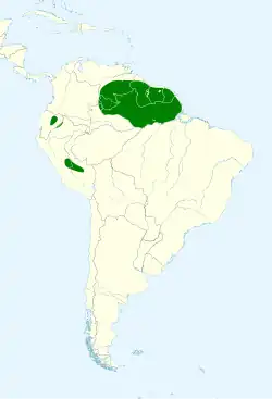 Pode ser encontrada nos seguintes países: Brasil, Equador, Guiana Francesa, Guiana, Peru, Suriname e Venezuela.[1]