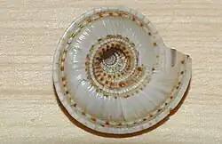 Algumas conchas de cefalópodes, incluindo espécies viventes como as do gênero Nautilus e alguns grupos fósseis, como amonóides, apresentam uma depressão localizada na área central de suas conchas, também denominada umbílico.[2]