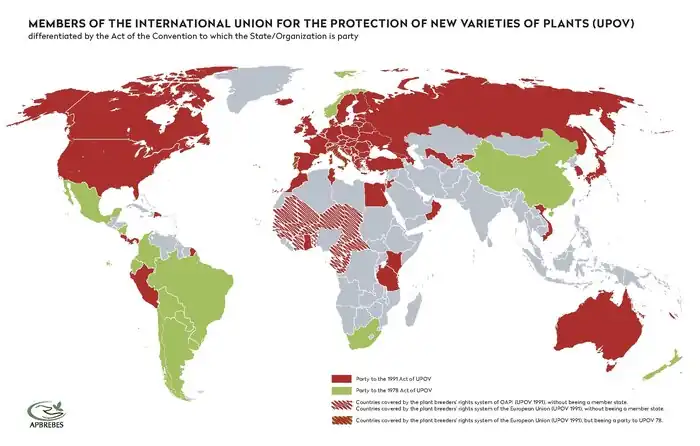 - ↑ «1991 Act: International Convention for the Protection of New Varieties of Plants» (PDF). UPOV. 19 de março de 1991