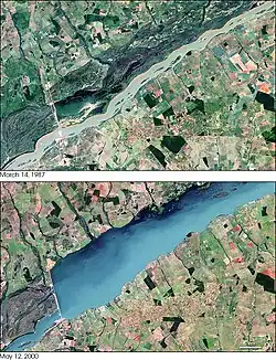 - ↑ Seu nível máximo operacional é de 259 m acima do nível do mar, e seu nível mínimo operacional é de 257 m acima do nível do mar.