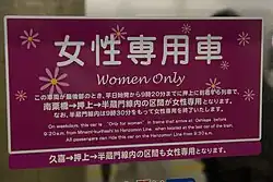 No Japão, os vagões exclusivos para mulheres foram introduzidos para combater condutas lascivas, particularmente o Apalpamento (chikan). As políticas variam de empresa para empresa: algumas estão em vigor somente no horário de pico, outras durante todo o dia, e há ainda aquelas que restringem os vagões exclusivos para mulheres aos trens de serviço rápido, que tendem a ser mais lotados e possuem paradas com intervalos relativamente maiores. De modo geral, contudo, a política funciona apenas em dias úteis, excluindo-se os feriados. As plataformas e portas dos trens são sinalizadas com indicações para os pontos de embarque dos vagões exclusivos e com os dias e horários de sua vigência. Apesar de serem destinados exclusivamente a mulheres, a maioria das operadoras permite que alunos do ensino fundamental, pessoas com deficiência e seus acompanhantes embarquem nesses vagões.