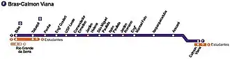 A Linha 12–Safira da CPTM compreende o trecho entre as estações Brás ↔ Calmon Viana. Até março de 2008, denominava-se Linha F–Violeta.[3]
