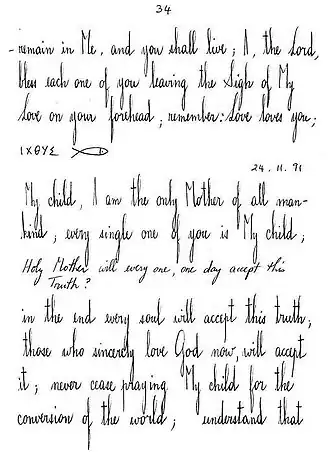 A promessa principal dos escritos é a garantia da parte de Deus de que ele vai unificar o Cristianismo, fazendo cumprir a oração de seu filho: "Que todos sejam um, como tu, Pai, estás em mim e eu em ti. Que eles estejam em nós, a fim de que o mundo creia que tu me enviaste" (Jo 17,21). É a iminente mudança de época em que vivemos.