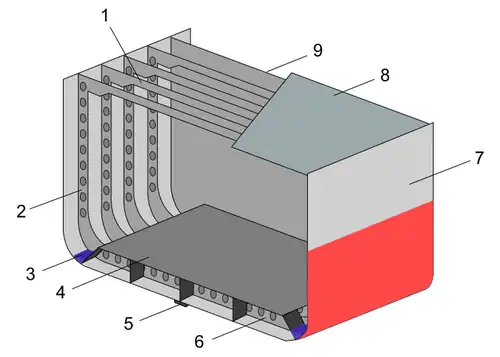 - Linha reta do vau - é a linha reta que une as interseções da face superior de cada vau com as faces exteriores da caverna correspondente;
