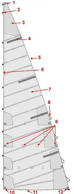 Cada extremidade da vela recebe normalmente um reforço (3) de várias espessuras de tecido para fortalecer os punhos.