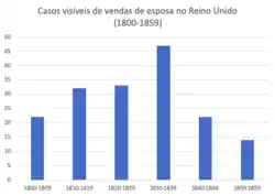 As vendas se tornaram mais comuns em meados do século XX, inclusive como resultado de muitos maridos estarem no exterior, nas forças armadas, na marinha mercante ou sendo transportados para as colônias.[90] Na época, boa parte da população acreditava erroneamente que a ausência de um dos cônjuges por sete anos constituía automaticamente um divórcio, de modo que, quando o marido retornava depois desse tempo e descobria que a sua esposa tinha uma nova família, o dilema era resolvido com a venda de sua esposa no mercado local, normalmente diretamente ao seu novo companheiro.[91]