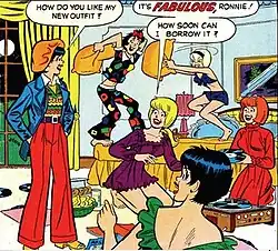 Na imagem abaixo em Betty and Me nº 2 (1966): pode-se observar Archie e Veronica dançando, enquanto no fundo, Jughead (que está comendo hambúrguer) perguntando para Betty: Por que está tão chateada, Betty? Archie e Ronnie estão apenas dançando! e ela respondendo furiosa e com ciúmes: É assim mesmo? Bem, a música parou há cinco minutos!.