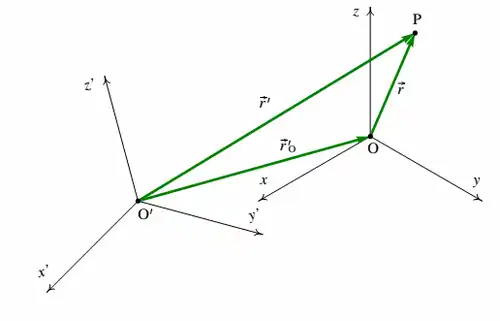 onde é o vetor de posição da primeira origem O em relação à segunda origem.