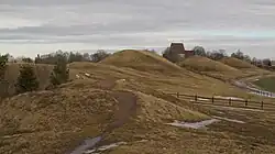 - ↑ O sítio funerário de Sutton Hoo tecnicamente não é viking. Pertence aos Anglos Orientais e data de um século antes da Era Viking.[85] O sítio é frequentemente interpretado erroneamente como sendo viking.[86]