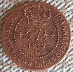 - ↑ «O vintém de ouro (37 /1/2 Réis e 75 1/2 Réis)». Cortina do Passado. 22 de junho de 2020. Consultado em 18 de março de 2023